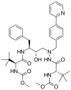 Atazanavir is an aza-dipeptide analogue with a bis-aryl substituent on the (hydroxethyl)hydrazine moiety with activity against both wild type and mutant forms of HIV protease.