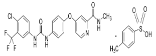 Sorafenib is a kinase inhibitor used to treat unresectable liver carcinoma, advanced renal carcinoma, and differentiated thyroid carcinoma.